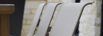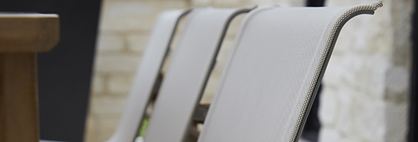Our Batyline® Outdoor Performance Sling features quick-dry technology for comfort soon after rain, with double the durability of standard weaves due to higher pick count. It offers superior UV and mold resistance, outlasting other fabrics in longevity and maintenance. Eco-friendly and OEKO-TEX® certified, this recyclable material meets Greenguard Gold low emission standards, making it a sustainable choice for outdoor furniture.